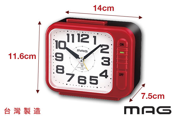 日本MAG時尚方形座檯鬧鐘 (紅)|台灣製造